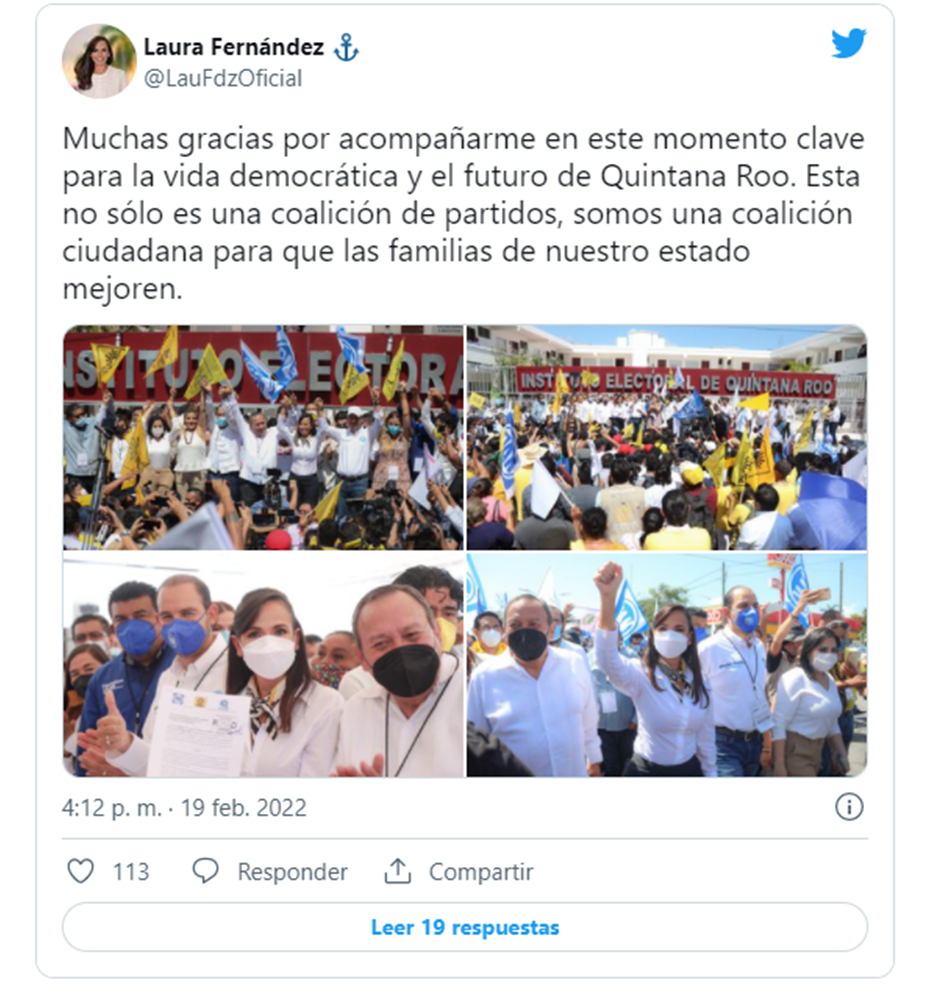 - Laura Fernández, candidata de Vamos por Quintana Roo
