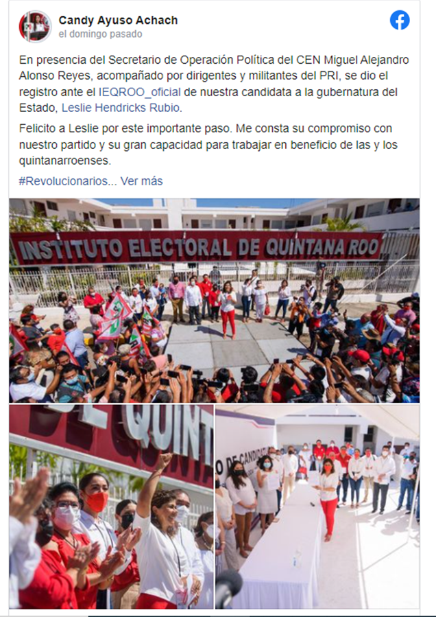 En Quintana Roo, el PRI irá solo y contenderá de la mano de Leslie Hendricks, quien era precandidata única del partido.