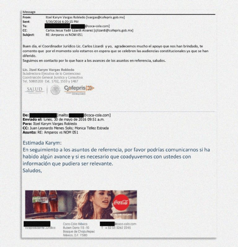 En 2012, Enrique Peña Nieto se convirtió en presidente de este país e invitó como secretaria de Salud a Mercedes Juan López. Había sido presidenta ejecutiva de Funsalud, organización civil patrocinada por las principales empresas farmacéuticas, hospitalarias, de alimentos y bebidas en México; también había sido consejera de Coca Cola. Ya como funcionaria, se opuso fuertemente a que se estableciera un impuesto a bebidas azucaradas. Durante la administración de Peña Nieto, decenas de grandes empresas recibieron condonaciones y cancelaciones de impuestos; entre ellas, la cadena de tiendas Oxxo, que es parte del conglomerado de FEMSA, el embotellador más grande de productos Coca Cola en el mundo, por volumen de ventas. Según reportes de la organización civil Fundar, se le condonaron alrededor de 60 millones de pesos (296 mil dólares) de impuestos entre 2015 y 2019.