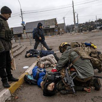 El asesor presidencial ucranio, Oleksiy Arestovych, afirmó que se encontraron cadáveres de mujeres violadas y quemadas, además de los cuerpos de funcionarios locales y niños en Bucha, así como más civiles ejecutados en Irpin y Hostomel.