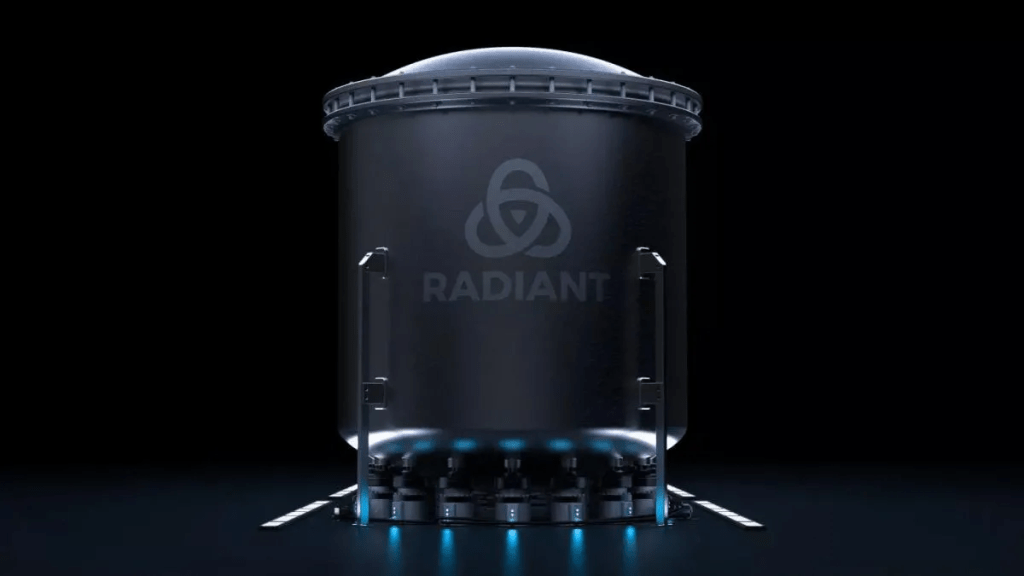 La empresa californiana Radiant acaba de conseguir la financiación necesaria para desarrollar un minirreactor nuclear de un megavatio, compacto, portátil y de bajo coste que cabe en un contenedor de transporte.