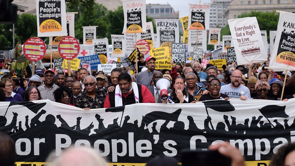 Denunció el racismo sistémico, la devastación ecológica, la economía de guerra y el militarismo, la “falsa narrativa de los cristianos nacionalistas”, y reiteró que “necesitamos una resucitación moral”.
