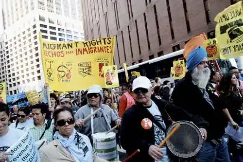 Con canciones viejas y nuevas de lucha social, la marcha sorprendió el corazón del sector financiero así como a turistas de todo el mundo al proceder por esta capital del capital, con el mosaico multiracial y transgeneracional de manifestantes repitiendo versos sobre solidaridad y dignidad social, y pancartas en las que se leía la proclama: “todos tienen el derecho de vivir” y “todos nos elevamos cuando nos levantamos desde abajo”.