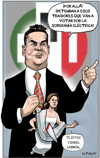 Los integrantes de la alianza opositora Va por México reiteraron que la reforma atenta contra el medio ambiente al privilegiar energías sucias, es insuficiente, no retoma los 12 puntos de su pliego petitorio y es regresiva. Por todo ello, calificaron a la mayoría de traidores a la patria, al tiempo que coreaban la frase de batalla: “No va a pasar, no va a pasar” y levantaban sus cartelones de rechazo a la iniciativa. En una prolongada discusión en la que hicieron uso de la tribuna 33 oradores y se registraron incidentes y acusaciones de agresiones verbales que no llegaron a la violencia física, Mier puso en el micrófono un discurso del ex presidente Adolfo López Mateos alusivo a la nacionalización de la industria eléctrica. En él, el ex mandatario llamaba a no confiarse porque en años futuros algunos “malos mexicanos, identificados con las peores causas del país, intentarán por medios sutiles entregar de nuevo el petróleo y nuestros recursos a inversionistas extranjeros… Sólo un traidor entrega su país a los extranjeros”.
