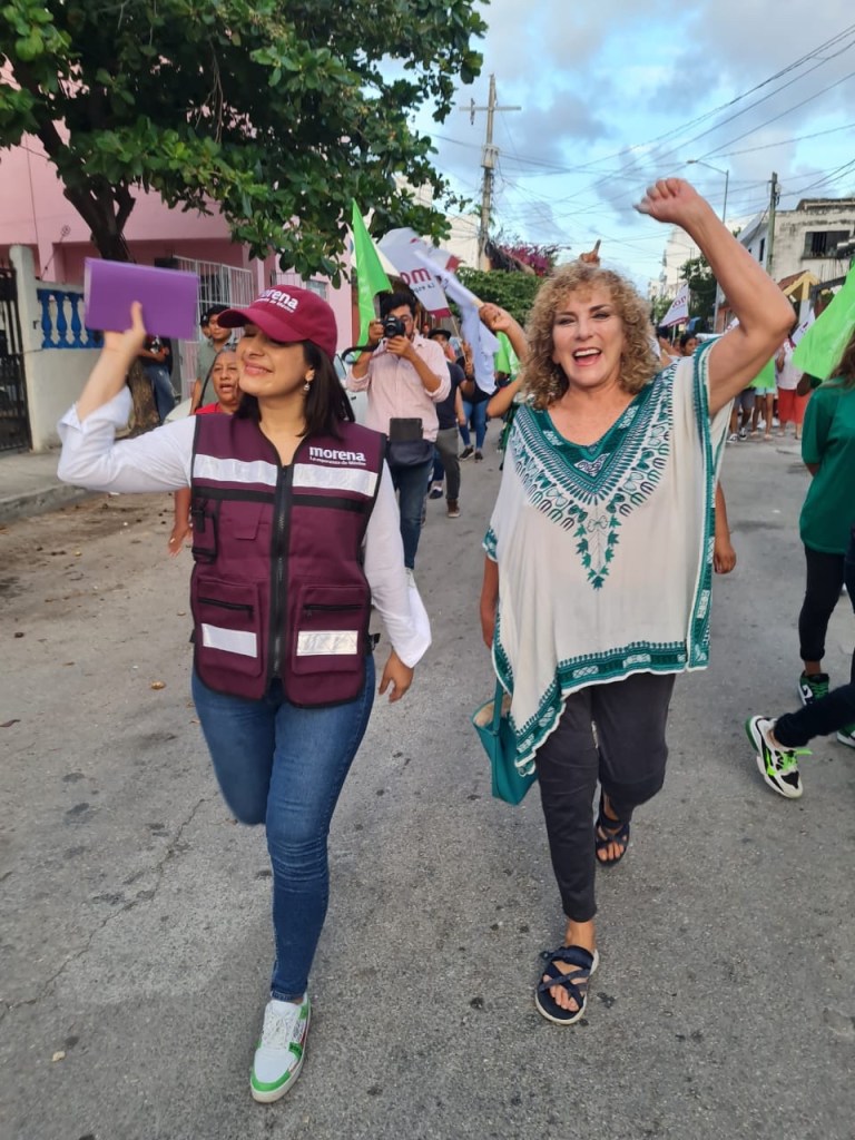 Realidades.- La ex senadora Luz María Beristain acompañó a la candidata Estefanía Mercado durante su recorrido por la Colonia Luis Donaldo Colosio correspondiente al distrito 10 de Playa del Carmen.