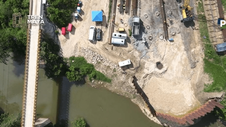 De acuerdo con el reporte de este 4 de julio, en el Tramo 1, ubicado en Palenque, Chiapas, se avanza en la construcción de un viaducto para que el Tren Maya cruce el río Chacamax.