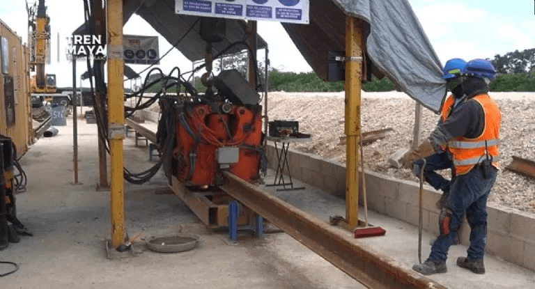 El último avance se realiza en el Tramo 4, cerca de la localidad de Holcá, Kantujil, en Yucatán, donde con el terraplén se construyen muros laterales para paso vehicular en la zona.