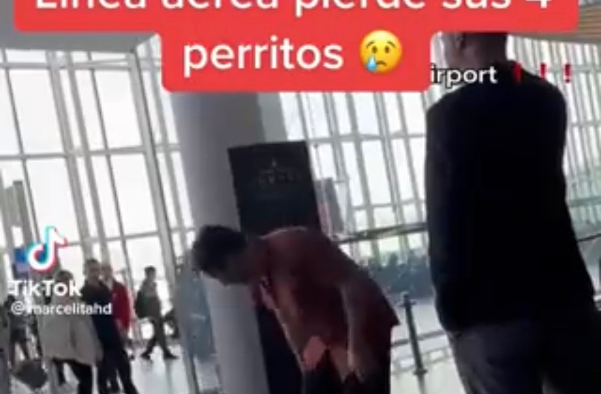 En el material divulgado en redes sociales, se puede ver que una mujer intenta consolarlo, mientras el hombre nuevamente arremete contra los empleados de la aerolínea y les pide que le enseñen a sus perros.
