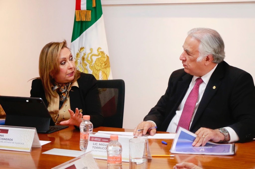 Realidades.- La Gobernadora Lorena Cuellar se reunió con Miguel Torruco, secretario de turismo federal para trabajar de manera conjunta, rumbo al Campeonato Mundial de Voleibol de Playa Tlaxcala 2023, que se realizará en el estado del 6 al 15 de octubre.