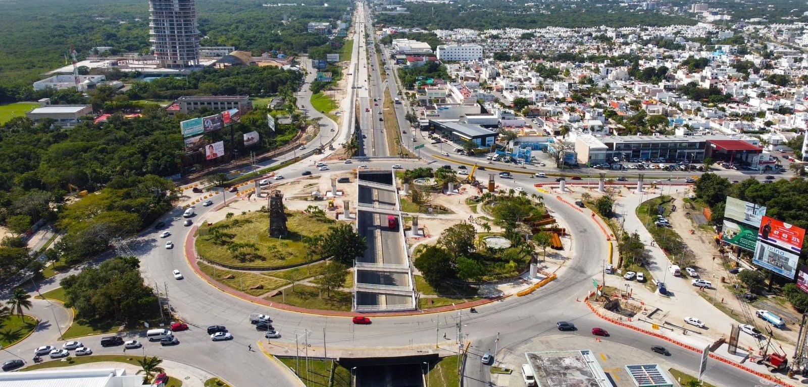 En esta obra se concluyó la rehabilitación del cuerpo dirección Cancún en una longitud de 10 kilómetros hasta el entronque Colosio. El cuerpo con dirección aeropuerto cuenta con avance de 4.6 kilómetros, además continúan los trabajos de demolición acarreo, construcción de terracería, obras de drenaje, obras inducidas y la construcción de pavimento con concreto hidráulico.
