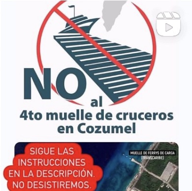 Los miembros del colectivo «No al cuarto muelle» argumentan que el desarrollo del proyecto de infraestructura a cargo de la empresa Muelles del Caribe «arrebatará el acceso a la ÚLTIMA PLAYA PÚBLICA en el Malecón de Cozumel».
