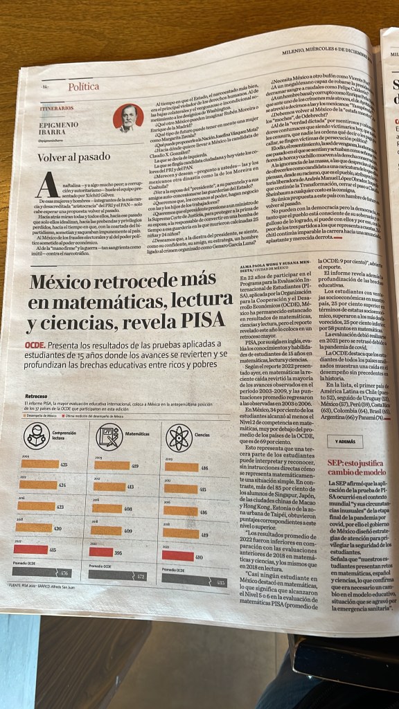 El Presidente Andrés Manuel López Obrador ha desestimado los resultados de la prueba PISA 2022, que señalan una significativa reducción en el rendimiento de estudiantes mexicanos en matemáticas, ciencias y lectura. AMLO argumenta que estos parámetros «no los tomamos en cuenta» debido a que se crearon durante el periodo neoliberal.