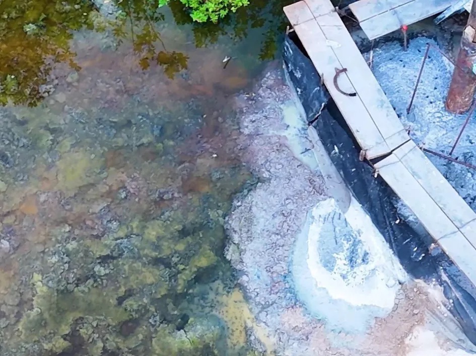 Cancun.- Por medio de una imagen área de observa el derramamiento de concreto sobre el sistema lagunar Nichupté en las obras del puente homónimo que busca conectar la zona peninsular con la zona hotelera de Cancún para mejorar la movilidad turística.