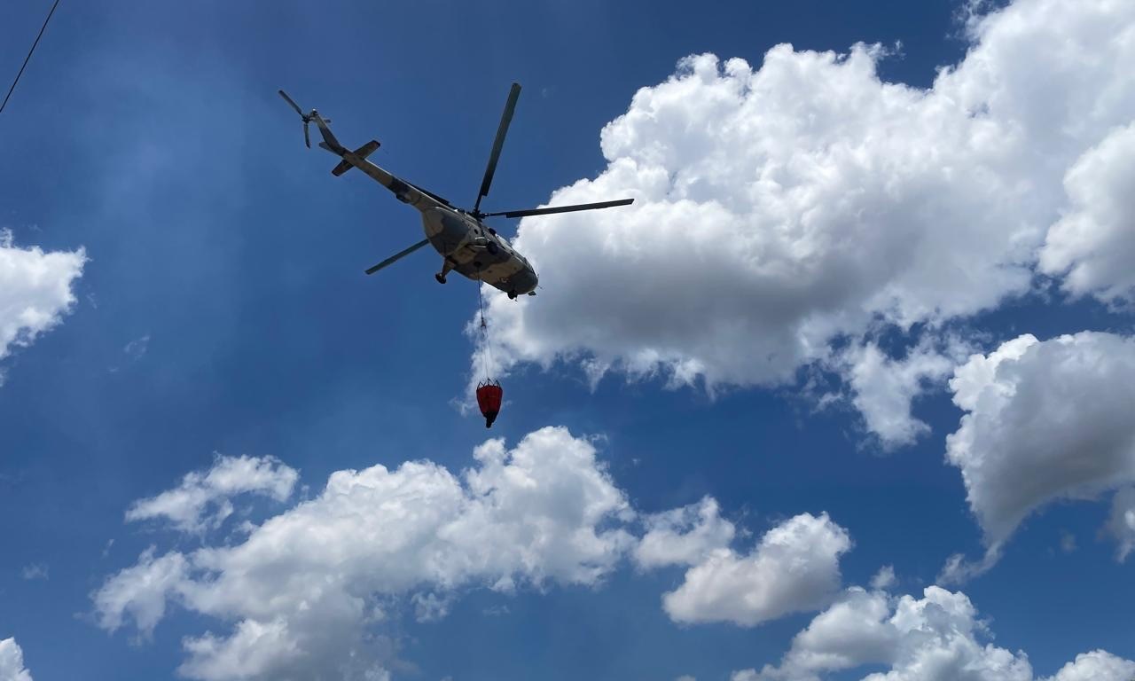 Se utilizó un helicóptero MI17 para sobrevolar la zona de forma constante. Esto permitió tener una visión clara y en tiempo real del comportamiento del incendio, facilitando la planificación de las acciones necesarias para su control.