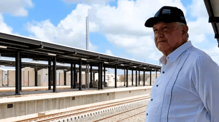 Este sábado constató en Quintana Roo avances de los tramos 4 y 5 del Tren Maya acompañado de la secretaria de Medio Ambiente y Recursos Naturales, María Luisa Albores González; los secretarios de la Defensa Nacional, Luis Cresencio Sandoval González; de Infraestructura, Comunicaciones y Transportes, Jorge Nuño Lara; de la Función Pública, Roberto Salcedo Aquino y de Desarrollo Agrario, Territorial y Urbano, Román Meyer Falcón; los subsecretarios de la Defensa Nacional, Gabriel García Rincón y de Egresos de la Secretaría de Hacienda y Crédito Público, Juan Pablo de Botton Falcón; el director general de la Empresa de Participación Estatal Mayoritaria Tren Maya S. A. de C.V., Óscar David Lozano Águila; el coordinador general de Fiscalización de la Secretaría de la Función Pública, Eduardo Gurza Curiel; el director general del Grupo Aeroportuario, Ferroviario, de Servicios Auxiliares y Conexos, Olmeca-Maya-Mexica, José Gerardo Vega Rivera; el director general de Ingenieros de la Secretaría de la Defensa Nacional, Salvador Fernando Cervantes Loza; el comandante del Agrupamiento de Ingenieros Felipe Ángeles, Ricardo Vallejo Suárez y el supervisor honorario del Tren Maya, Daniel Chávez Morán, así como integrantes de la Secretaría de la Defensa Nacional y representantes de las empresas ICA, Grupo Indi, Alstom y Mota-Engil.