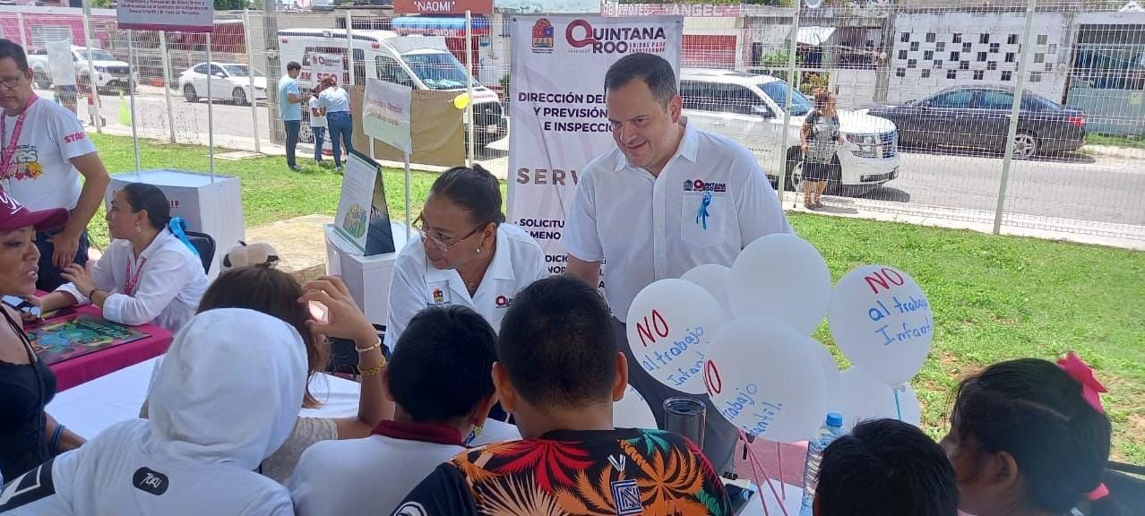 El titular de la STyPS, José Francisco Trujillo Brandi destacó que como parte del Nuevo Acuerdo por el Bienestar y Desarrollo de Quintana Roo, impulsado por la gobernadora Mara Lezama, se realizarón de manera paralela actividades lúdicas que promueven la Prevención de Riesgos enfocados en los Derechos de las Niñas, Niños y Adolescentes y el No al Trabajo Infantil, Riesgoso y Forzoso, a través de un área de dibujo y una especializada en juegos didácticos.