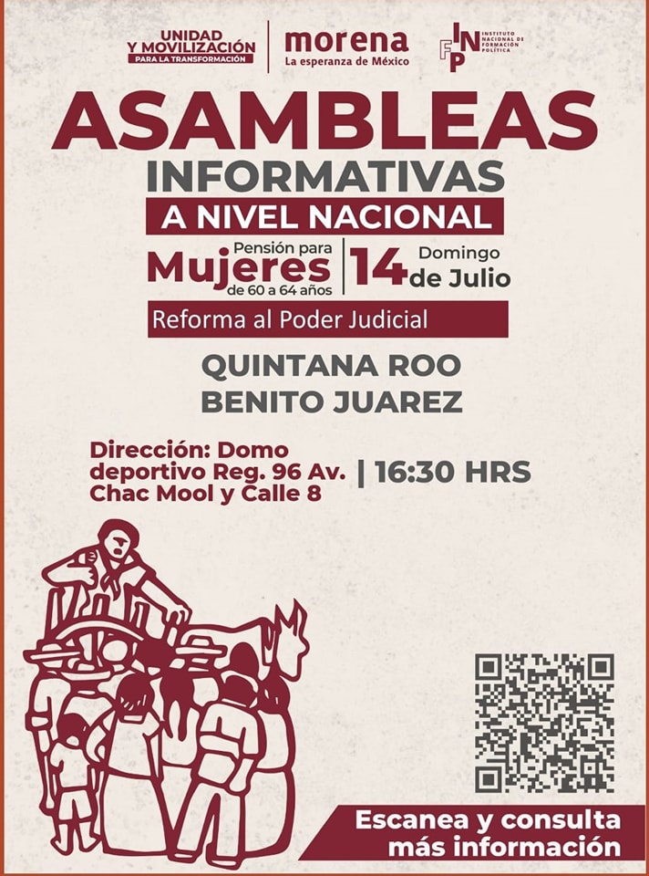 El virtual diputado electo Jorge Sanén convocó a la ciudadanía de Cancún para informarse en la Asamblea Informativa sobre las iniciativas de reformas impulsadas por la también virtual presidente electa Claudia Sheinbaum. La Asamblea Informativa se llevará a cabo en el domo deportivo de la región 96 a las 16:30 horas del domingo 14 de julio en la Ciudad de Cancún, Quintana Roo.