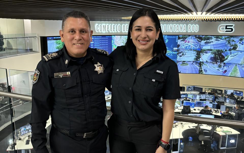 Cancún.- La presidenta municipal electa de Solidaridad, Estefanía Mercado, se reunió con el Contralmirante Julio César Gómez Torres, secretario de Seguridad Ciudadana de Quintana Roo, en el marco de una visita que realizó al edificio del C5.