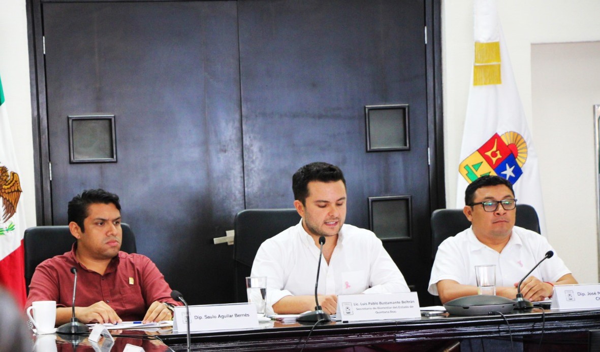 Chetumal.- El secretario de Bienestar, Pablo Bustamante Beltrán, compareció ante la Comisión de Desarrollo Humano, Poblacional y Productividad de la XVIII Legislatura del Congreso del Estado, para ampliar la información de la glosa del Segundo Informe de la gobernadora Mara Lezama Espinosa, caracterizado por acciones que buscan restablecer el tejido social y crear un futuro con prosperidad compartida.