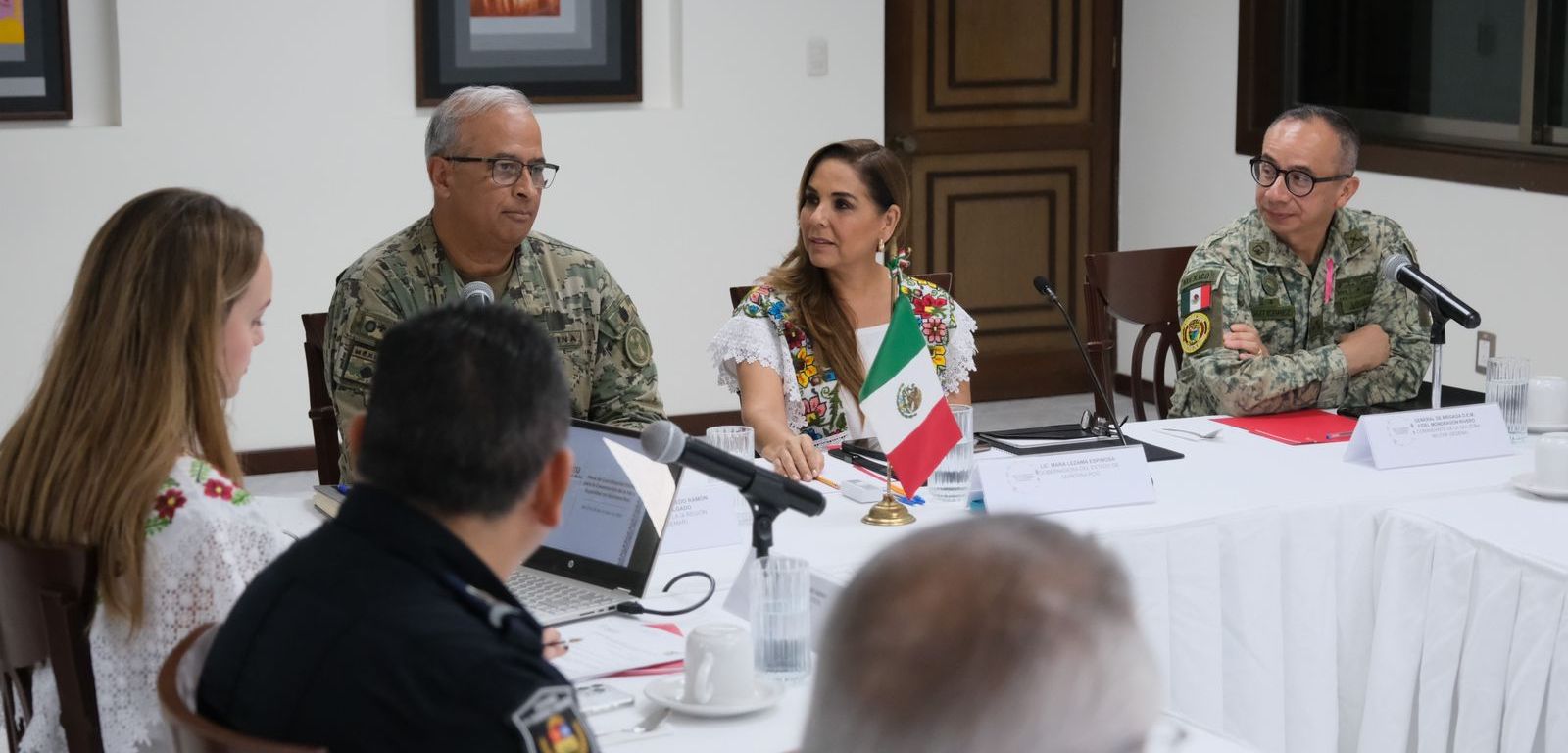 Participaron activamente en esta Mesa de Seguridad el General de Brigada DEM Fidel Mondragón Rivero, comandante de la 34ª Zona Militar; el Vicealmirante CG DEM Alfredo Ramón Enríquez Delgado, comandante de la 9ª Región Naval; el comisario General Brigadier DEM José Luis Martínez Rojas, coordinador estatal de la Guardia Nacional.