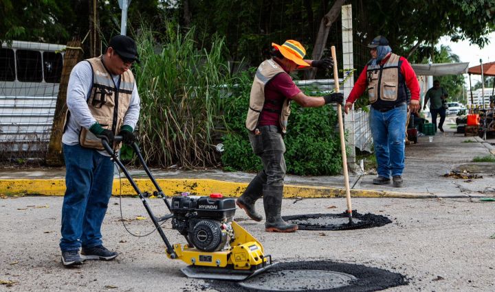 Con intensas jornadas avanzan los trabajos de bacheo en las principales calles y avenidas de Playa del Carmen