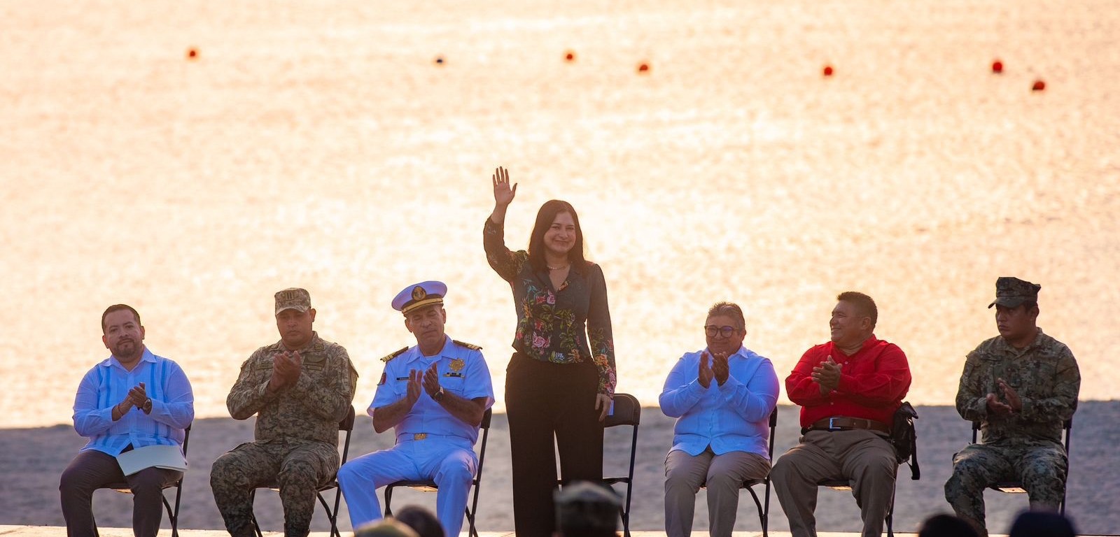Al evento asistieron la diputada Lilia Inés Mis Martínez, en representación del Congreso del Estado; el Teniente de Infantería Julio César Cruz, por parte de la Secretaría de la Defensa Nacional; el Primer Maestre Pedro Damián Cruz, por la Secretaría de Marina Armada de México; José Enrique Gómez Burgos, presidente de la Sociedad Cooperativa Pesquera Xaman Ha; y el Capitán de Puerto, Daniel Antonio Maas Michel, regidoras, regidores e invitados.