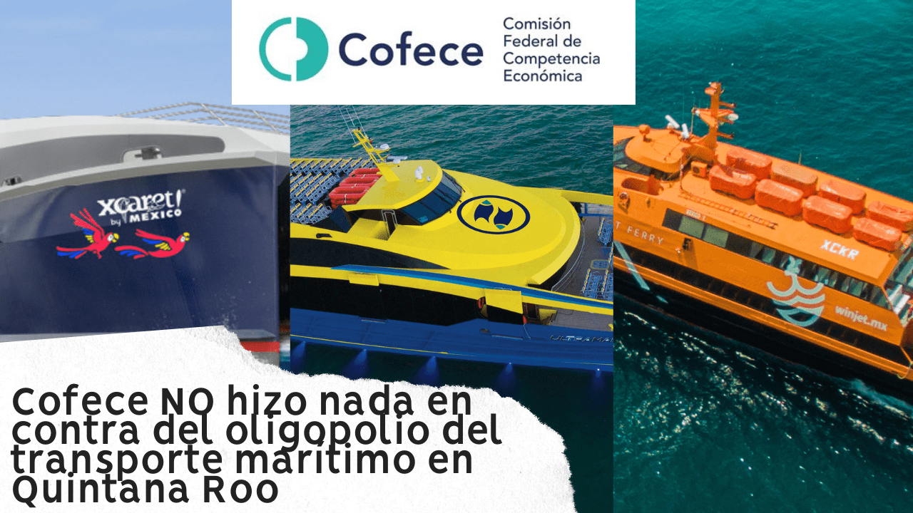 Un caso emblemático para la economía popular de Quintana Roo fue la inacción de la Cofece regulando la competencia del transporte marítimo. En el estado existe de facto un oligopolio en el transporte marítimo de Ferris en las rutas Cozumel-PDC e Isla Mujeres-Zona continental.