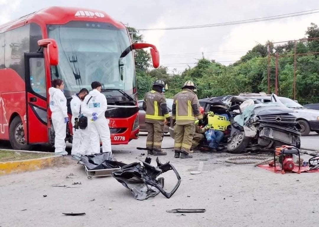 Cancún.- Un fatal accidente de tránsito se registró la mañana de este viernes en la avenida José López Portillo con carretera Gas Auto, entre el conductor de un automóvil y el chofer de un autobús de la empresa ADO.