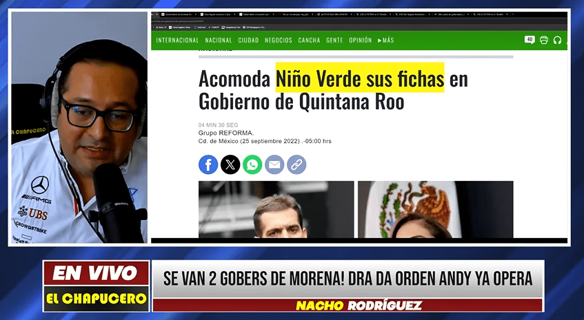 Cabe mencionar Rafael Marín, fundador de Morena en Quintana Roo estuvo de visita en el estado de Quintana Roo para las fiestas decembrinas y se removieron las aguas políticas en la entidad rumbo a la gubernatura de 2027 donde según el youtuber el delfín de Emilio González es Eugenio Segura.