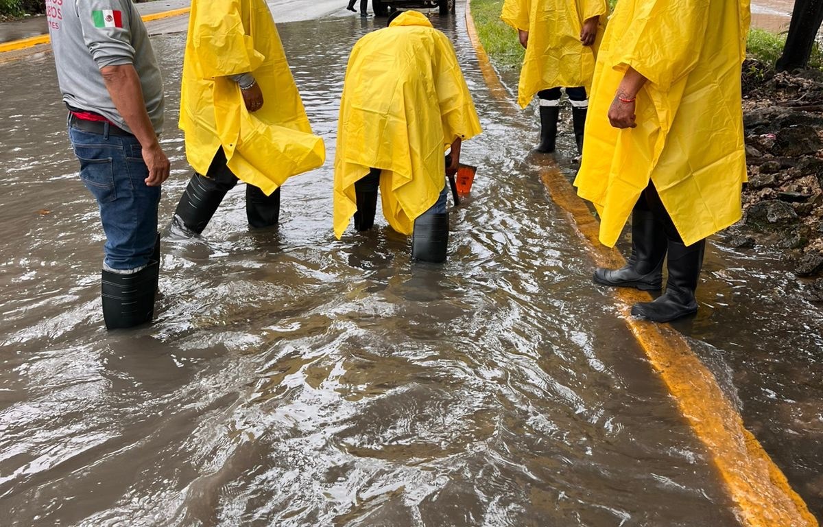 Playa del Carmen, QRoo.— En una reacción inmediata ante las inclemencias del tiempo, el gobierno de Solidaridad, por conducto de las secretarías de Servicios Públicos Municipales y de Protección Civil, Prevención de Riesgos y Bomberos, atendió los encharcamientos pluviales en cinco puntos críticos de la ciudad.