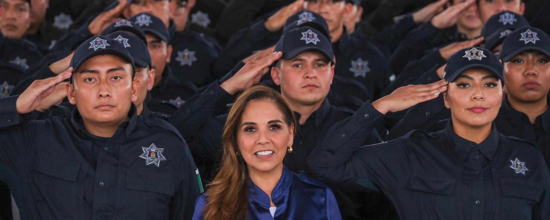 Chetumal. – Al presidir la ceremonia de graduación de 295 elementos policiacos, 156 mujeres y 139 hombres, egresados del curso “Formación Inicial para Policía de Proximidad”, la gobernadora Mara Lezama Espinosa expresó que cambiar la situación de seguridad en el estado también implica cambiar la actitud de las fuerzas de seguridad.