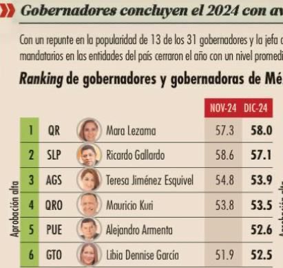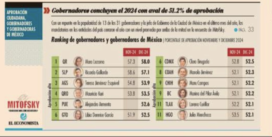 La gobernadora de Quintana Roo, Mara Lezama se posiciona en primer lugar nacional en el ranking de aprobación realizado por Consulta Mitofsky publicada en El Economista.