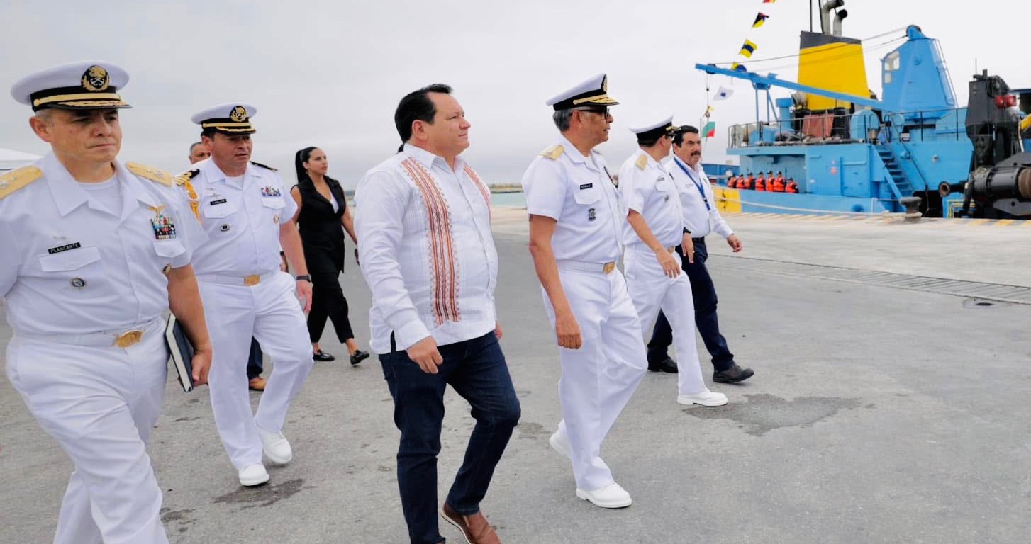 El almirante Raymundo Morales Ángeles, titular de la Semar, y el gobernador de Yucatán, Joaquín Díaz Mena, anunciaron el inicio de los trabajos de dragado preliminar y mantenimiento del Puerto de Altura de Progreso.