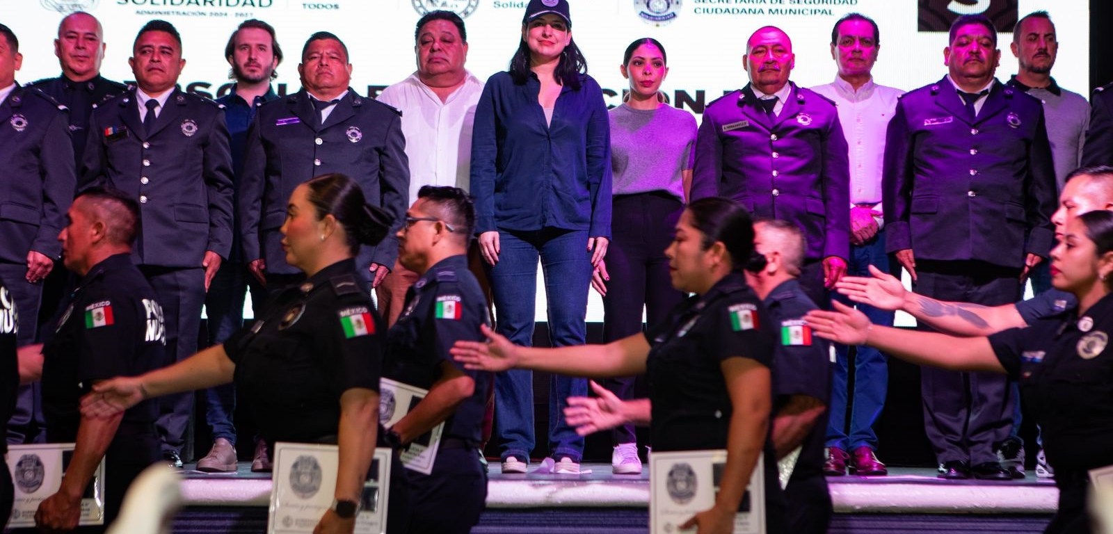Estefanía Mercado felicitó también a quienes obtuvieron nuevos rangos dentro de la corporación, precisando que este logro les da una mayor responsabilidad con su equipo, con su institución y, sobre todo, con la sociedad a la que sirven.
