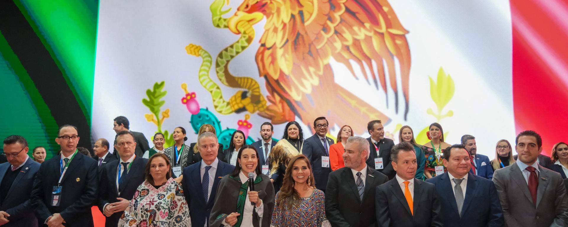 Madrid.- La gobernadora Mara Lezama Espinosa acompañó a la secretaria de Turismo del gobierno federal, Josefina Rodríguez Zamora, en el corte del listón inaugural del Pabellón México que alberga a los estados del país que participan en la Feria Internacional de Turismo (FITUR) 2025 y en el que destaca el Caribe Mexicano.
