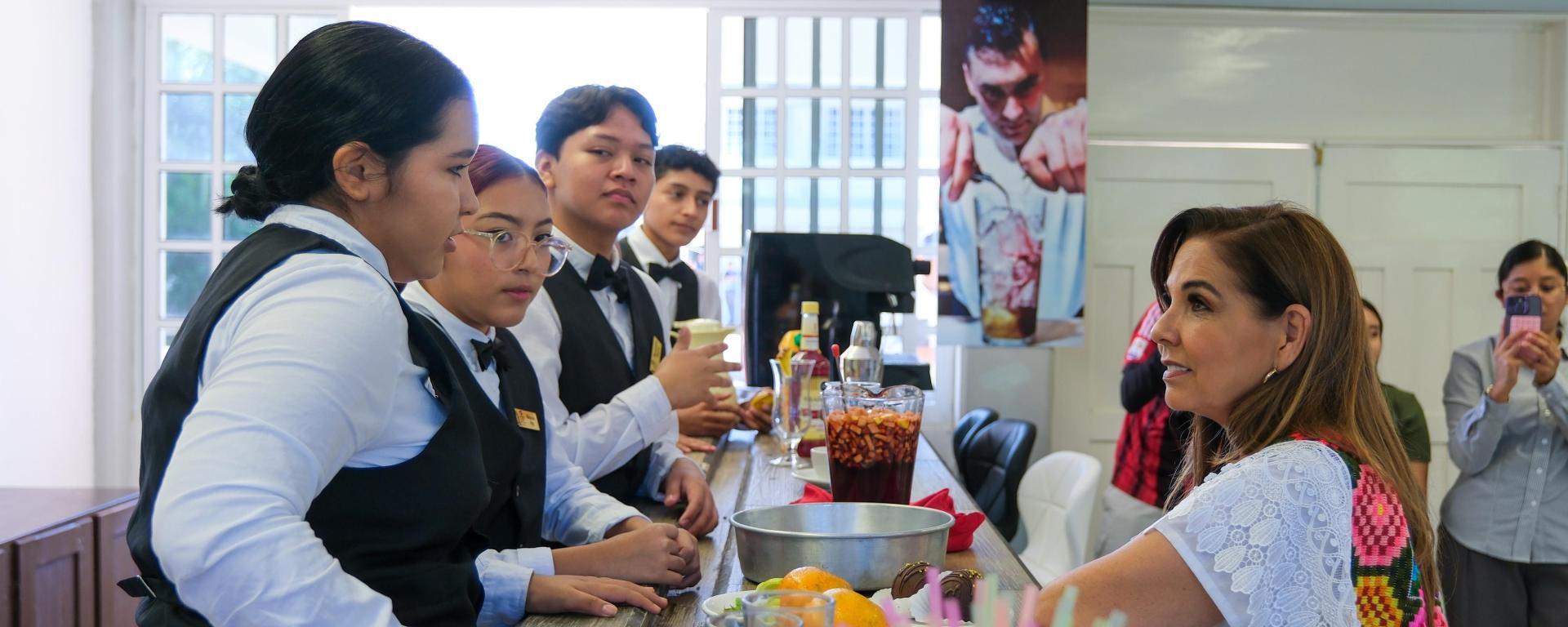 A partir de entonces inició una total transformación de este taller. “Con 128 nuevas piezas de mobiliario y equipamiento para el taller, las chavas y los chavos que estudian alimentos y bebidas ya pueden realizar sus prácticas adecuadamente, porque cuando se combate la corrupción el dinero alcanza para más, como en este taller” explicó Mara Lezama al entregar este taller a alumnos y maestros del plantel.