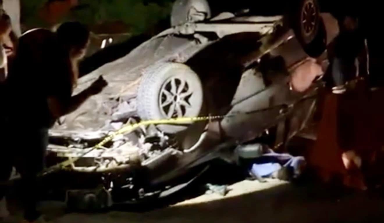 El conductor de una SUV que circulaba a alta velocidad perdió el control, chocó contra un poste y volcó, quedando el vehículo con las llantas hacia arriba. El impacto fue fatal para el hombre que iba al volante, cuyo cuerpo quedó parcialmente fuera del vehículo tras el fuerte accidente.
