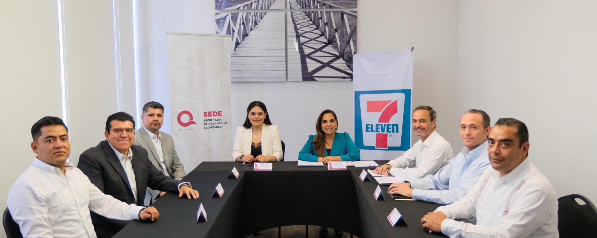 Cancún.- La gobernadora Mara Lezama Espinosa, acompañada del Secretario de Desarrollo Económico, Paul Carrillo, y directivos de la empresa 7-Eleven, informaron el plan de inversión que la reconocida empresa internacional llevará a cabo en la entidad entre los años 2025 y 2030.