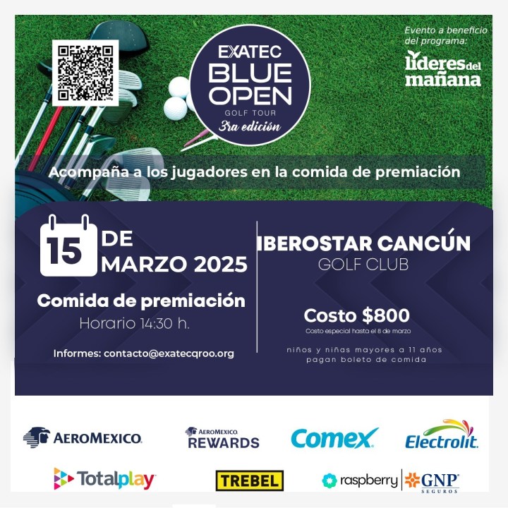 El EXATEC Blue Open Golf Tour promete ser una jornada llena de emociones en uno de los campos de golf más emblemáticos de la región. Los participantes podrán disfrutar de un recorrido desafiante mientras contribuyen a una causa noble. Sin embargo, no es necesario ser un experto en golf para sumarse a esta iniciativa. Aquellos que no jueguen golf pero deseen apoyar el programa Líderes del Mañana pueden participar en la comida de premiación, un espacio ideal para convivir, celebrar los logros de los participantes y conocer más sobre el impacto de este programa en la vida de cientos de estudiantes.