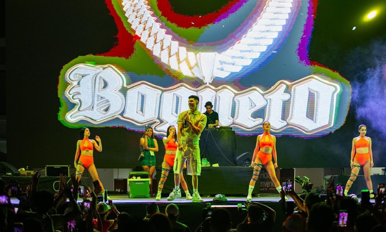Playa del Carmen.- La Plaza 28 de Julio lució nuevamente abarrotada por más de 20 mil personas, en su mayoría jóvenes playenses, para disfrutar del espectacular concierto de “El Bogueto”, quien puso a cantar y bailar a la multitud a ritmo de reguetón, durante la tercera noche del “Carnaval del Pueblo” Playa del Carmen 2025.