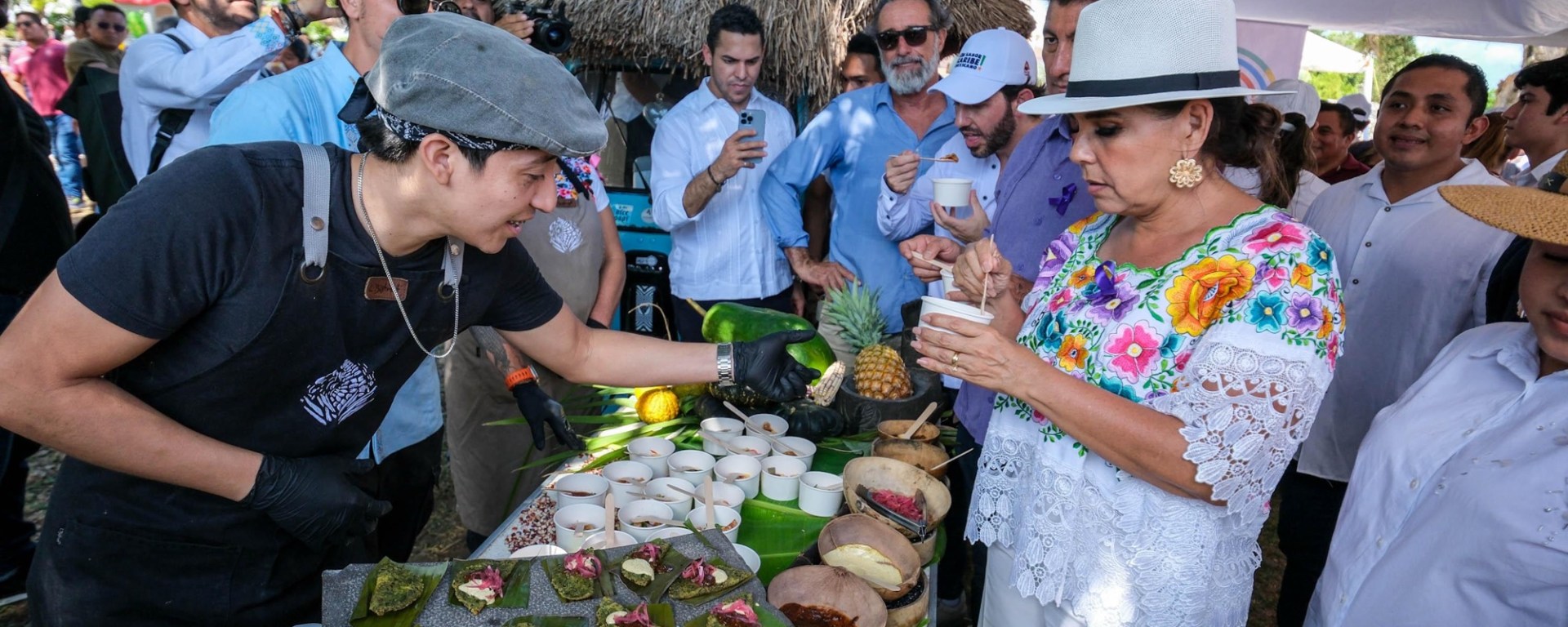 Durante el recorrido por el Festival se destacó que este año quienes asisten tienenb la oportunidad de degustar una variedad de platillos auténticos que representan los destinos más destacados de la región, como empanadas de chaya con queso de bola, pargo frito en escabeche, tok seel, pipián con huevo, camarones a la chaya, entre otros manjares que reflejan la fusión de las raíces mayas con influencias internacionales.