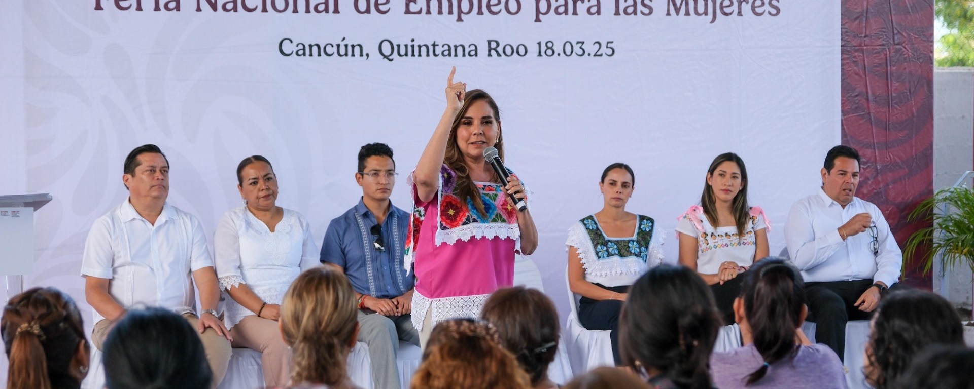 Acompañada del titular del Servicio Nacional del Empleo, Claudio Frausto Lara, así como de la Encargada de Despacho de la Secretaría del Trabajo y Previsión Social (STYPS), Verónica Salinas Mozo, la gobernadora Mara Lezama exhortó a las mujeres presentes a extender sus alas y lleguen a donde quieran.