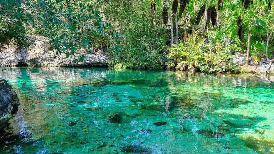 Frente a la playa virgen, se encuentra el cenote Xcacelito, donde cientos de peces viven entre las raíces de los manglares y corales fosilizados.
