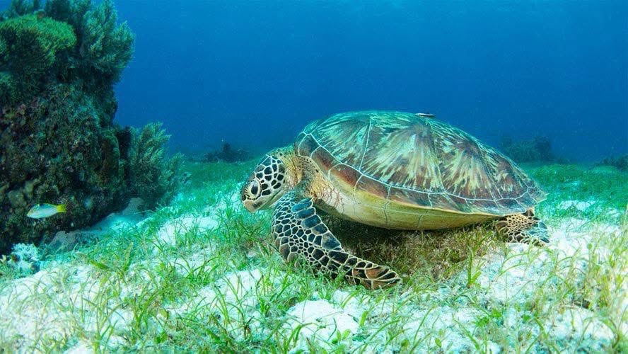 Este santuario caribeño es hogar de la tortuga blanca, caguama y carey por sus condiciones favorables para alimentarse de pasto marino, así como para reproducirse y anidar.