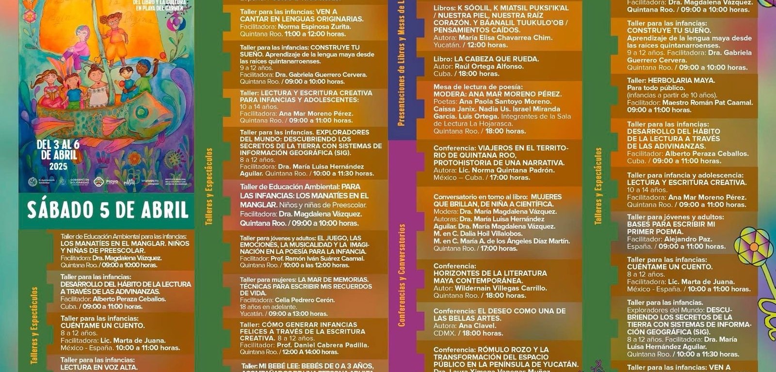 Se contará con la presencia de escritores reconocidos como Ramón Iván Suárez Caamal, autor del himno al estado de Quintana Roo, quien presentará un taller de poesía, así como su libro «El huevo estrafalario y herbario poético».