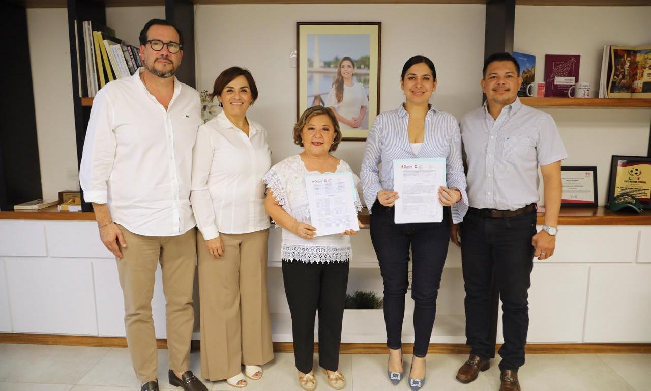 Playa del Carmen.— La presidenta municipal Estefanía Mercado y la secretaria Anticorrupción y Buen Gobierno de Quintana Roo, Reyna Arceo Rosado, firmaron el convenio de colaboración para el uso del Sistema de Evaluación y Seguimiento de Control Interno, encaminado a modernizar la administración de los recursos y combatir la corrupción.