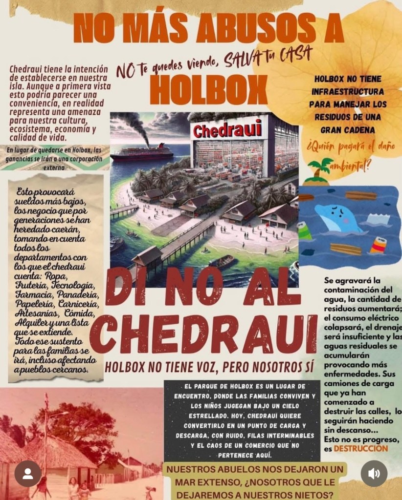 Bajo el lema “No más abusos a Holbox” aseguran los promotores que la llegada de la tienda de autoservicio implicaría abrirle la puerta a la gentrificación en detrimento del estilo de vida de la isla.