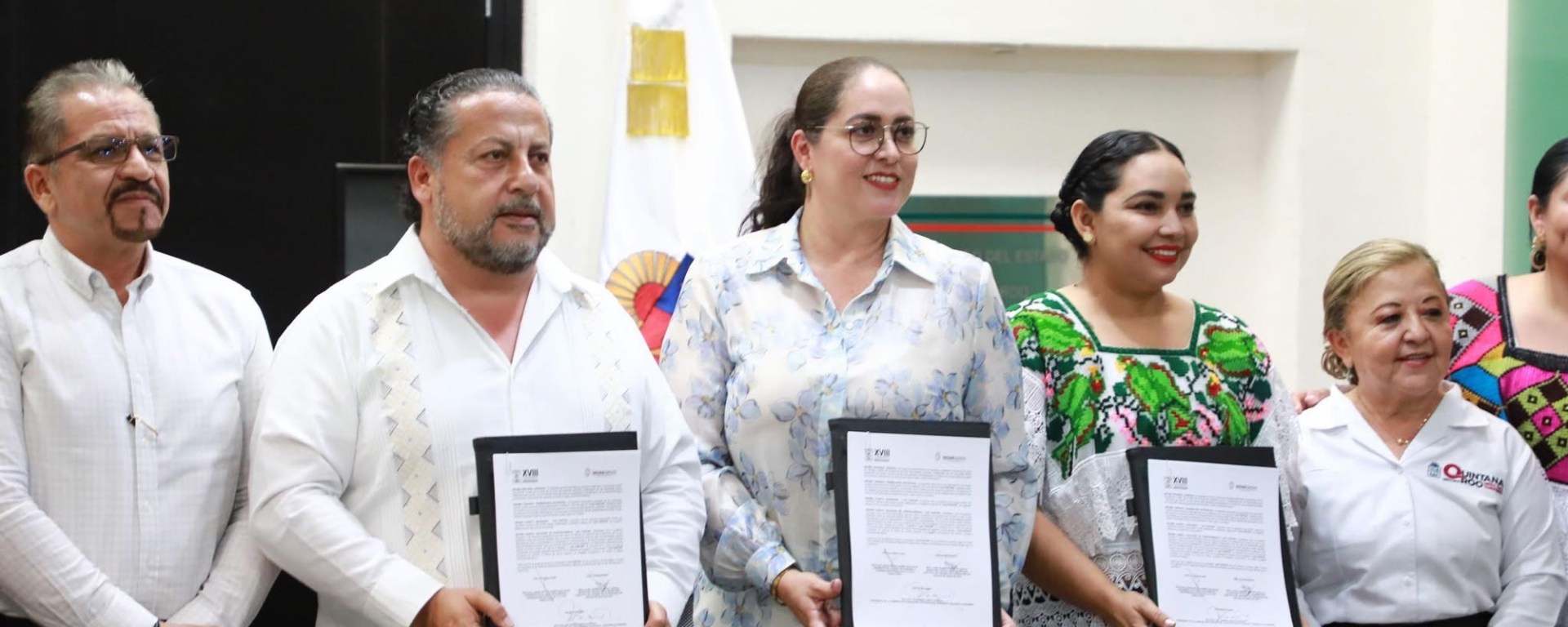 Para establecer mecanismos de coordinación, intercambio de información y fortalecimiento de la política anticorrupción del Estado de Quintana Roo, la Legislatura de la Justicia Social, representada por el diputado Jorge Sanén, presidente de la JUGOCOPO, firmó un Convenio General de Colaboración con la Secretaría Ejecutiva del Sistema Anticorrupción a través de la secretaria técnica Alma Gabriela Arroyo Angulo.