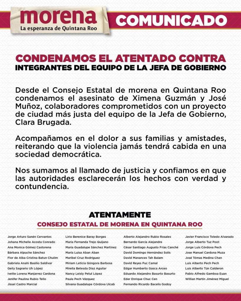 El Diputado Jorge Sanen, presidente del Consejo Estatal de morena en Quintana Roo expresó el rechazo absoluto a los actos de violencia registrados al equipo de la Jefa de Gobierno, Clara Brugada.