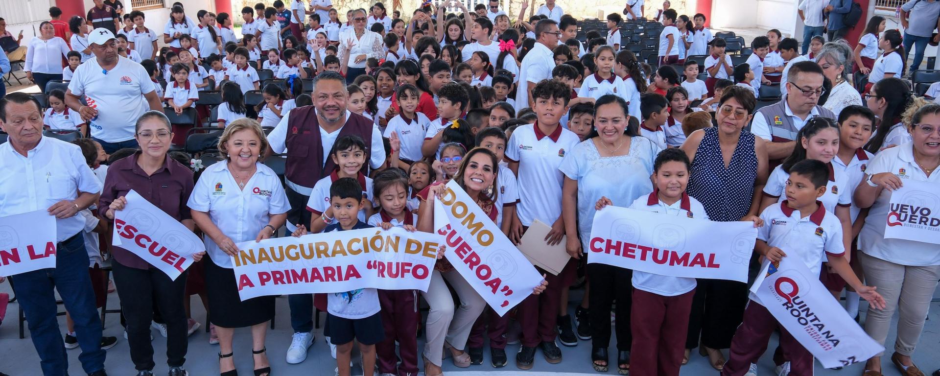Chetumal.- Después de casi cinco décadas sin contar con un espacio digno y protegido para el desarrollo de sus actividades escolares al aire libre, hoy la gobernadora Mara Lezama Espinosa entregó el domo de la escuela primaria «Rufo Figueroa» de la colonia Polígono II de la capital, en beneficio de 286 alumnas y alumnos.